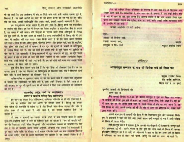 इंदिरा गांधी ने जब इन चिट्ठियों का जवाब नहीं दिया, तो आरएसएस प्रमुख देवरस ने आपातकाल को ‘अनुशासन पर्व’ बताने वाले विनोबा भावे से संपर्क साधा। 12 जनवरी, 1976 को लिखे अपने पत्र में विनोबा भावे से आग्रह किया कि आरएसएस पर प्रतिबंध हटाए जाने के लिए वे इंदिरा गाँधी को सुझाव दें। विनोबा भावे ने भी देवरस के पत्र का जवाब नहीं दिया। हताश देवरस ने विनोबा को एक और पत्र लिखा कि ”अख़बारों में छपी सूचनाओं के अनुसार प्रधानमंत्री (इंदिरा गाँधी) 24 जनवरी को वर्धा, पवनार आश्रम में आपसे मिलने आ रही हैं। उस समय देश की वर्तमान परिस्थिति के बारे में उनकी आपके साथ चर्चा होगी। मेरी आपसे याचना है कि प्रधानमंत्री के मन में आरएसएस के बारे में जो ग़लत धारणा घर कर गई है, आप कृपया उसे हटाने की कोशिश करें, ताकि आरएसएस पर लगा प्रतिबंध हटाया जा सके और जेलो मे बंद आरएसएस के लोग रिहा होकर प्रधानमंत्री के नेतृत्व में देश की प्रगति के लिए सभी क्षेत्रों में अपना योगदान कर सकें।’’