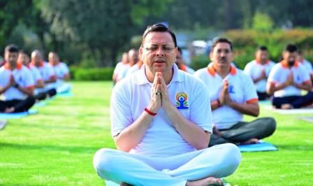सीएम धामी के साथ अधिकारियों व कर्मचारियों ने किया योग